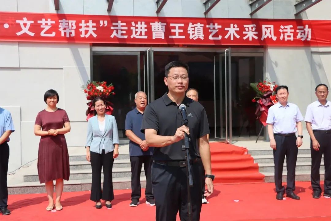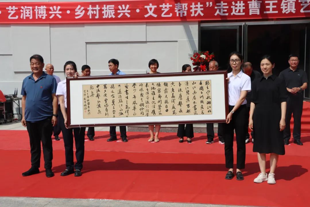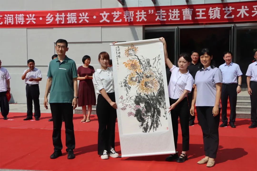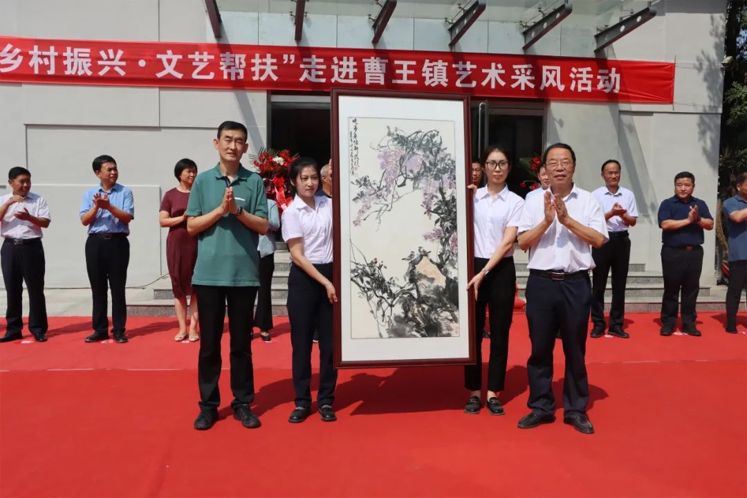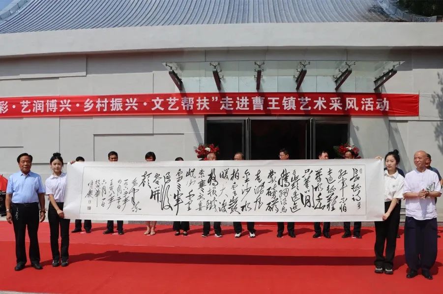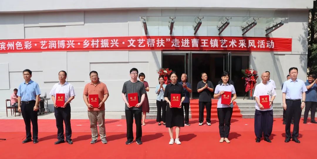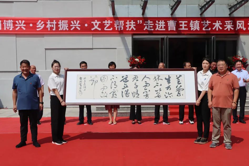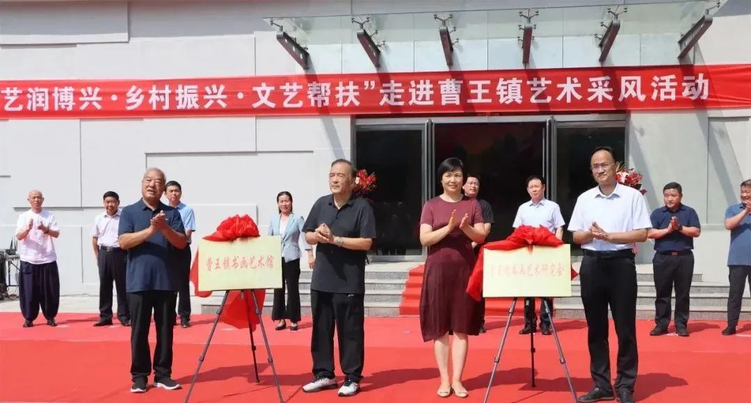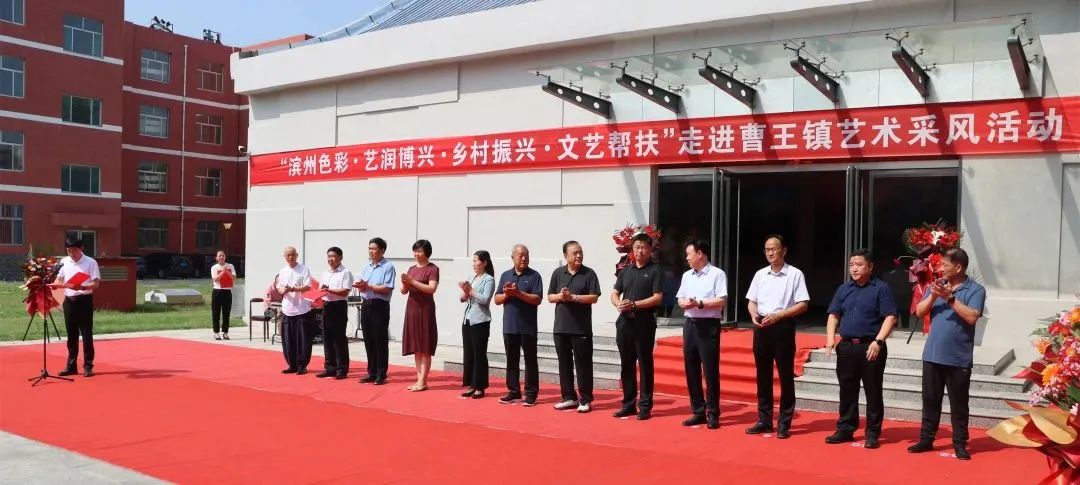 8月11日,风物“写起来”之“滨州色彩·艺润博兴·乡村振兴·文艺帮扶”艺术采风活动在博兴县曹王镇举行。市人大常委会原副主任张冠文,市政协原副主席刘相庆,市委宣传部副部长周卫华,市文联党组副书记、副主席窦志军,市水利局原党组书记、局长李黎明,市文联四级调研员田希婷,滨州职业学院国际学院党总支副书记陈兴军,市美协主席李玉泉,市书协常务副主席陈杰以及博兴县人大常委会主任刘方太,县政协主席郝波,县委常委、办公室主任张磊,县政协副主席段长兵等出席活动。张冠文、刘相庆为曹王镇书画艺术馆揭牌;田希婷、张磊为曹王镇书画艺术研究会揭牌窦志军宣布“滨州色彩·艺润博兴·乡村振兴·文艺帮扶行动”启动