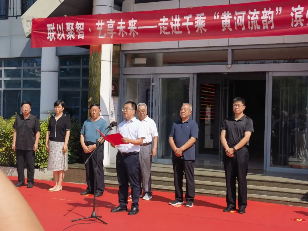 联以聚智·艺享未来——走进千乘“黄河流韵”滨州书法邀请展是市委宣传部、市文联贯彻滨州市深入实施人才优先发展战略,释放“识才、引才、爱才、敬才、用才”诚意,全方位展示滨州特色人才工作和良好创新环境而举办的一次书法艺术主题展,共收集全市优秀书法精品70余幅,开展后,将在博兴展出十天。