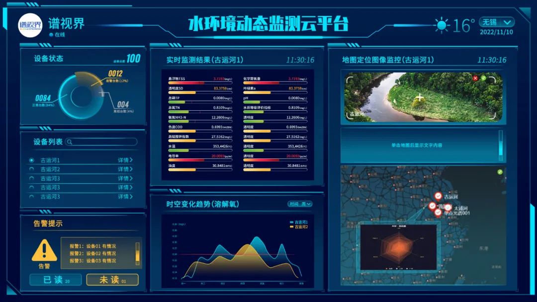 云平台集水质监测、设备监控、数据分析、看板展示于一体,同时配备手机端,及时推送预警信息为用户提供决策依据