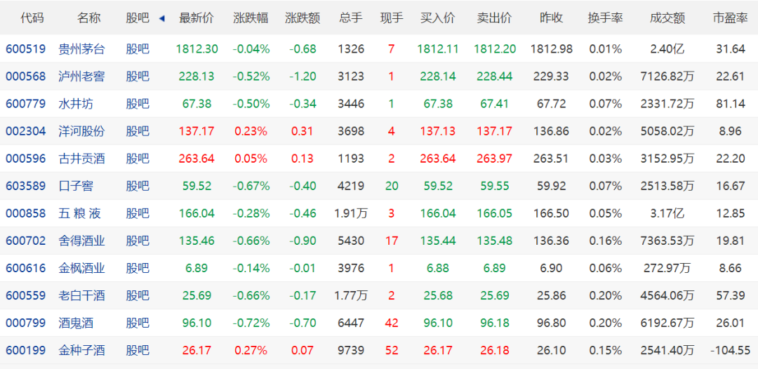 【白酒股市】8月16日白酒股市一览表