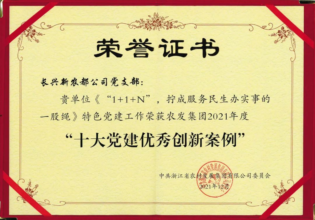 喜报 | 长兴新农都荣获省农发集团基层党建示范点、获评“十大党建优秀创新案例”
