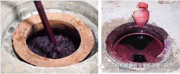 完成发酵后,葡萄皮、葡萄籽和葡萄梗会沉至缸底,他们称之为Chacha(恰恰);在经苹果乳酸发酵过程后,葡萄酒和Chacha会留在Qvevri缸内陈年,缸口会以黏土和泥土封死,陈年时间和Chaha的多少因酒庄而异。