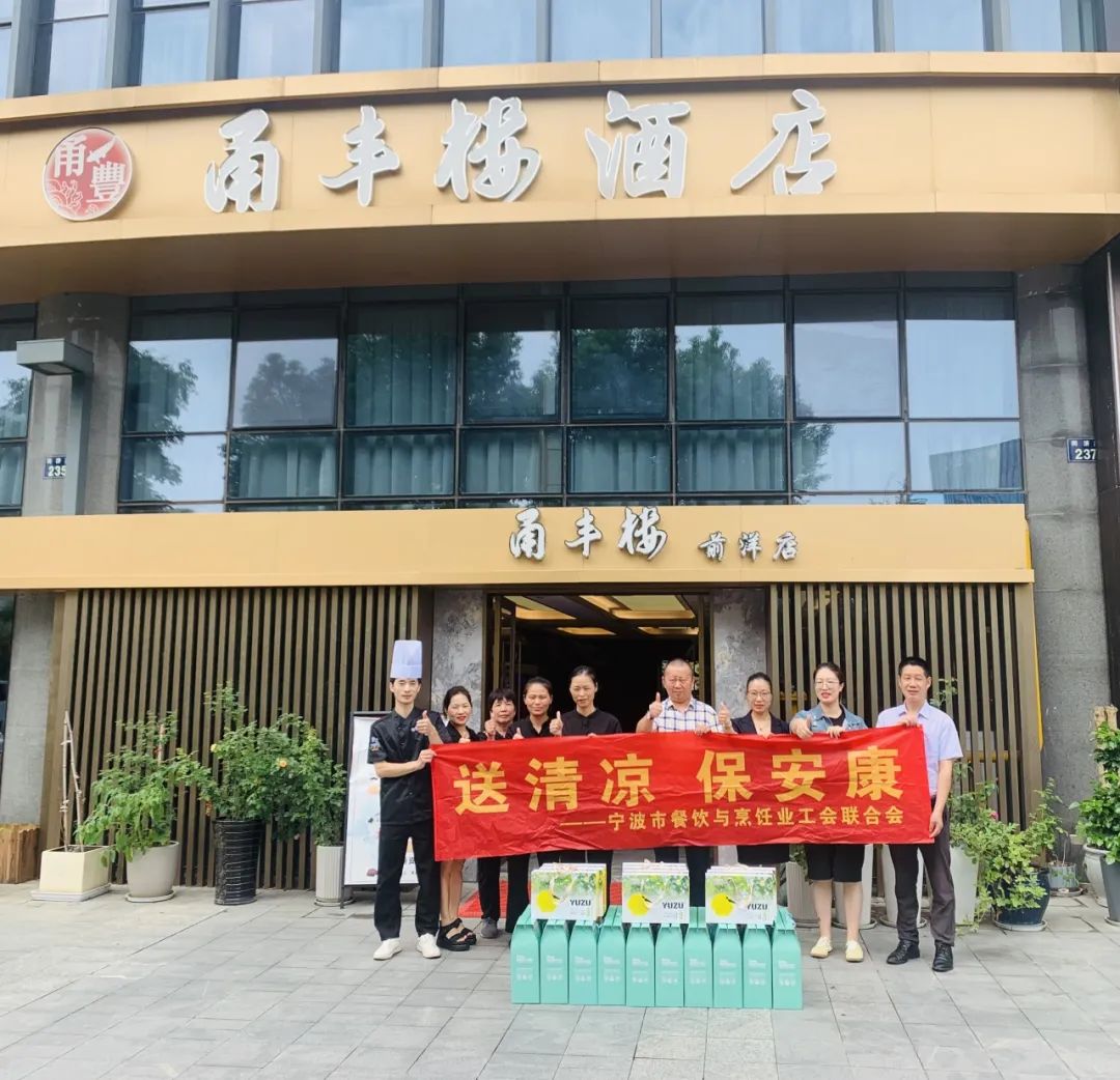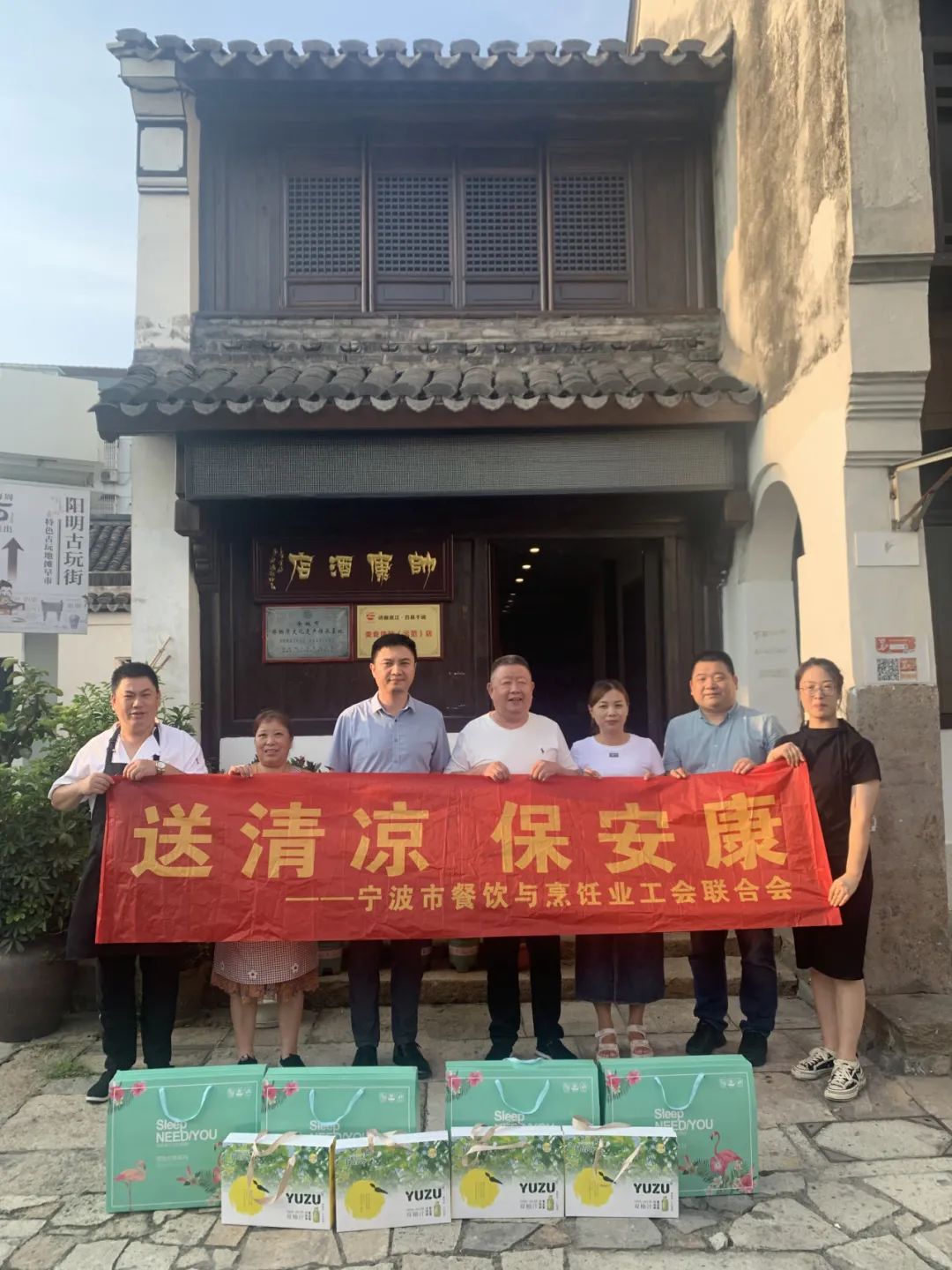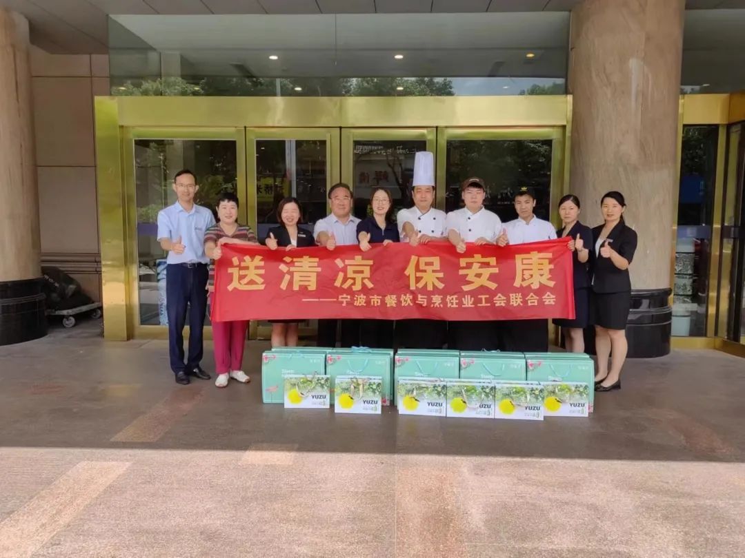 8月初,由宁波市餐饮与烹饪业工会联合会主席李阳辉,副主席徐莉、许美娟,委员郑鑫、梅碧峰等分别带队,走访了慈溪大酒店、慈溪市杭州湾大酒店有限公司、慈溪辰茂国脉酒店有限公司、浙江七码头集团有限公司、宁波幸会幸汇餐饮管理有限责任公司、宁波瓷航酒店用品有限公司、宁波市康喜乐嘉餐饮管理有限公司、宁波江北甬丰楼餐饮管理有限公司、余姚市酒楼、余姚帅康大酒店等会员企业,为在高温中坚守岗位的厨师们、服务员们等送去夏日清凉,给他们送上了空调被、双柚汁等防暑降温物品,向他们表达了亲切的慰问。