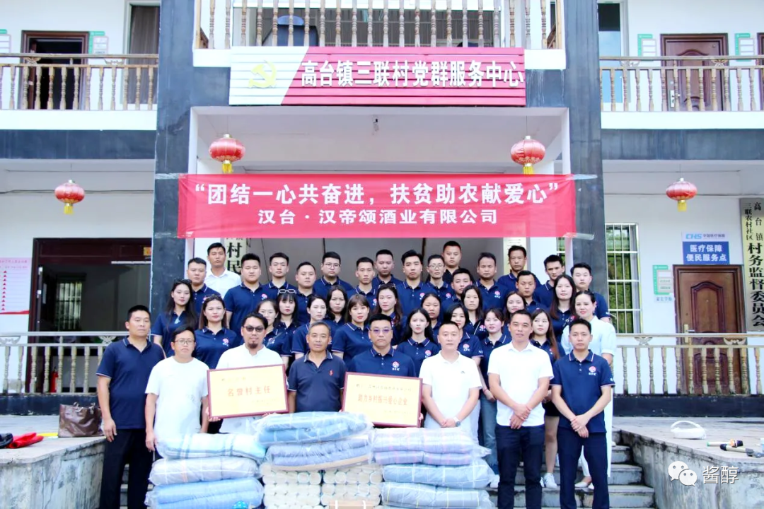 8月14日,贵州仁怀汉台·汉帝颂酒业来到湄潭县高台镇三联村,开展“团结一心共奋进、扶贫助农献爱心”活动。汉台·汉帝颂酒业有限公司相关负责人、员工,三联村村支监三委成员参加。