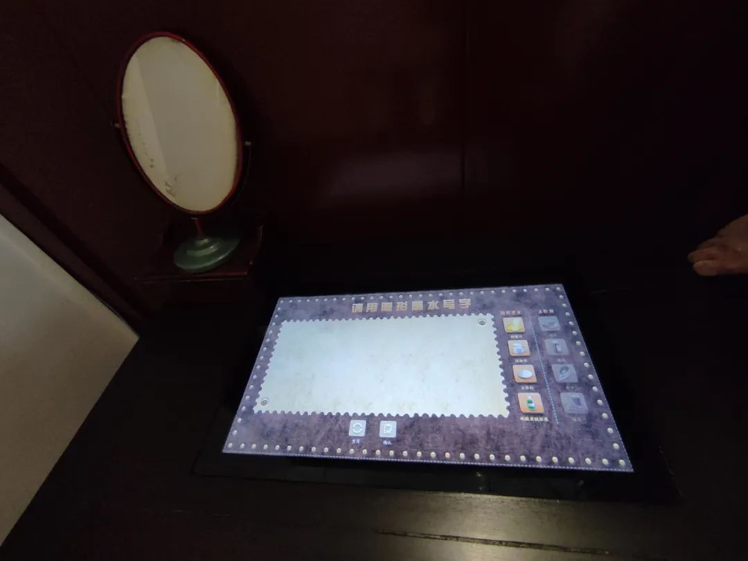参观者可以化身党的秘密工作人员执行任务,在一楼获取解锁密码后,到二楼文件柜的电子屏幕上体验用隐形墨水抄写秘密文件。