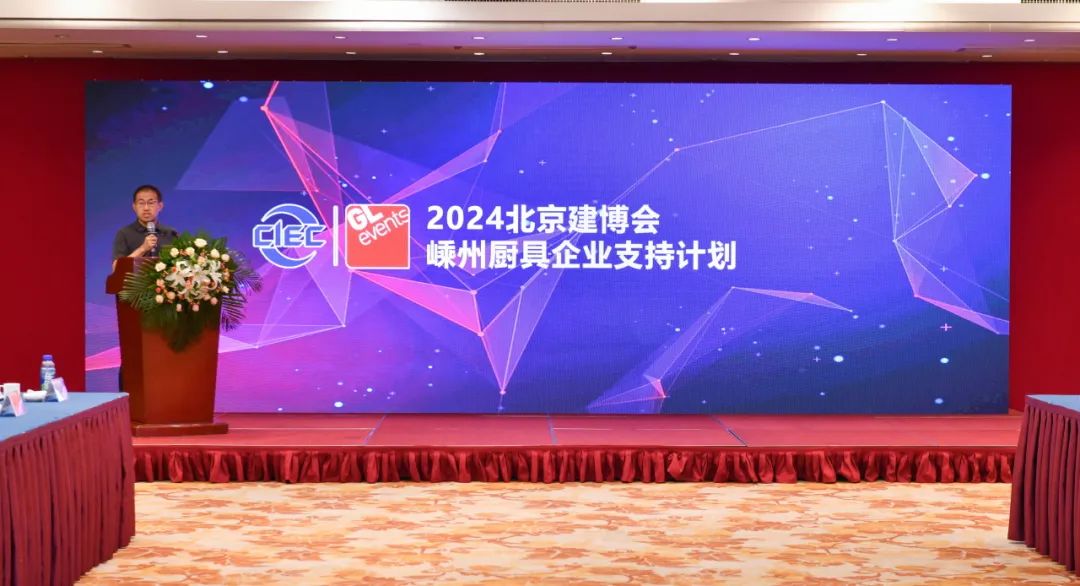 在会议上,中展智奥(北京)国际展览有限公司项目总监王居先作了题为《2024北京建博会推介及嵊州集成厨电企业参展支持计划》的主题演讲,从“变”与“不变”两个关键点展开介绍了2024北京建博会的整体布局和展会亮点。2024年3月6日-9日,北京建博会将以专馆的形式,全方位、多视角的展示健康厨房新时代涌现的众多智慧集成厨电产品,届时一大批行业领军企业面向全行业乃至全世界展示集成灶品类最新核心技术及解决方案。