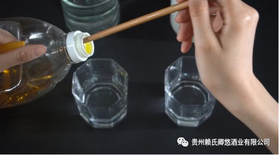 第二步,将一滴食用油滴入到酒杯中,将混入食用油的白酒精致一会儿。