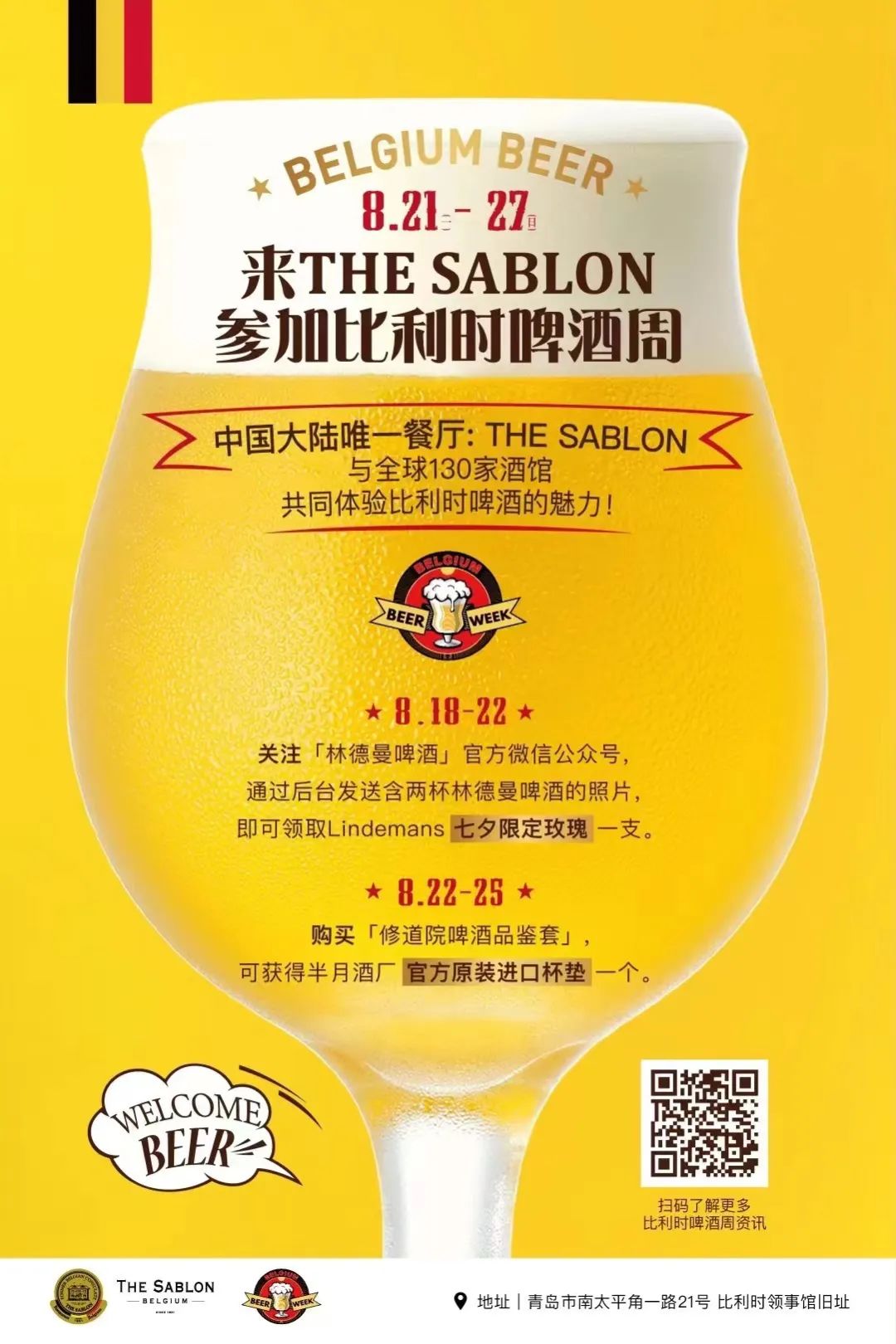 想发现城市中的时尚之地,品尝美味的比利时啤酒吗?SABLON 餐厅欢迎您!8 月18日至8 月 22 日,可到店参与林德曼啤酒官方活动,按提示获取七夕限定玫瑰;8 月 22 日至 25 日,SABLON 还将为您提供来自 Straffe Hendrik 的特制啤酒、修道院啤酒品鉴套组等。详情请见文末活动海报。