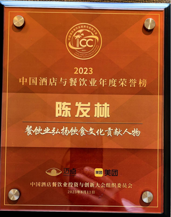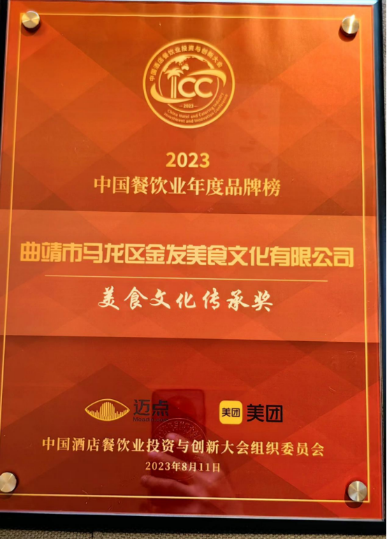 大会邀请了国家暨地方行业主管部门,国内各个省市区酒店餐饮业协会负责人、餐饮酒店企业董事长/总经理、专家学者、品牌供应商、投资商,酒店餐饮设备供应企业等负责人出席,并组织了国内酒店餐饮领域资深专家进行评审,曲靖市马龙区金发美食文化有限公司荣获2023中国酒店业年度品牌榜“美食文化传承奖”,董事长陈发林荣获2023中国酒店与餐饮业年度荣誉榜“餐饮业弘扬饮食文化贡献人物”。