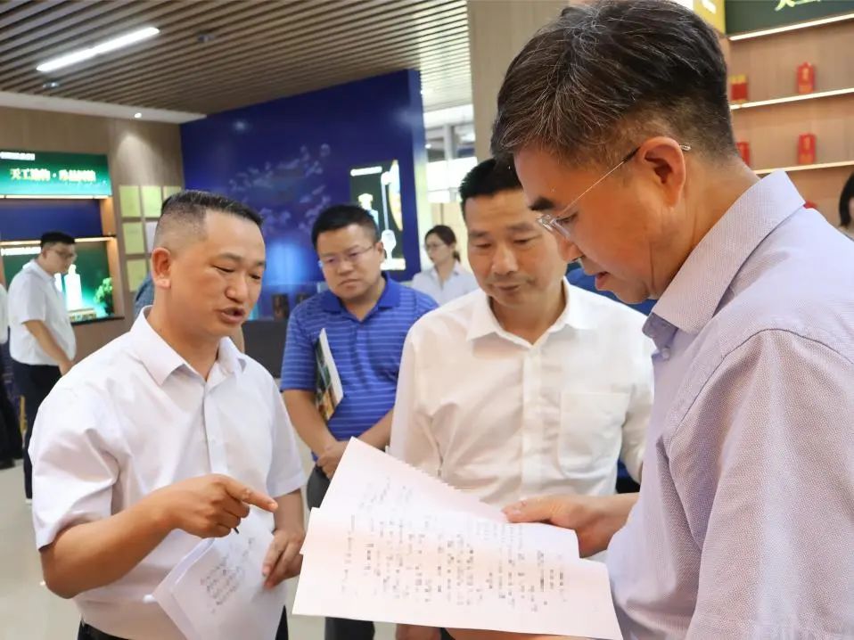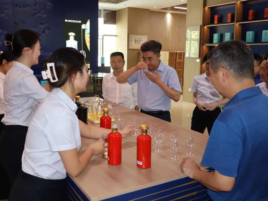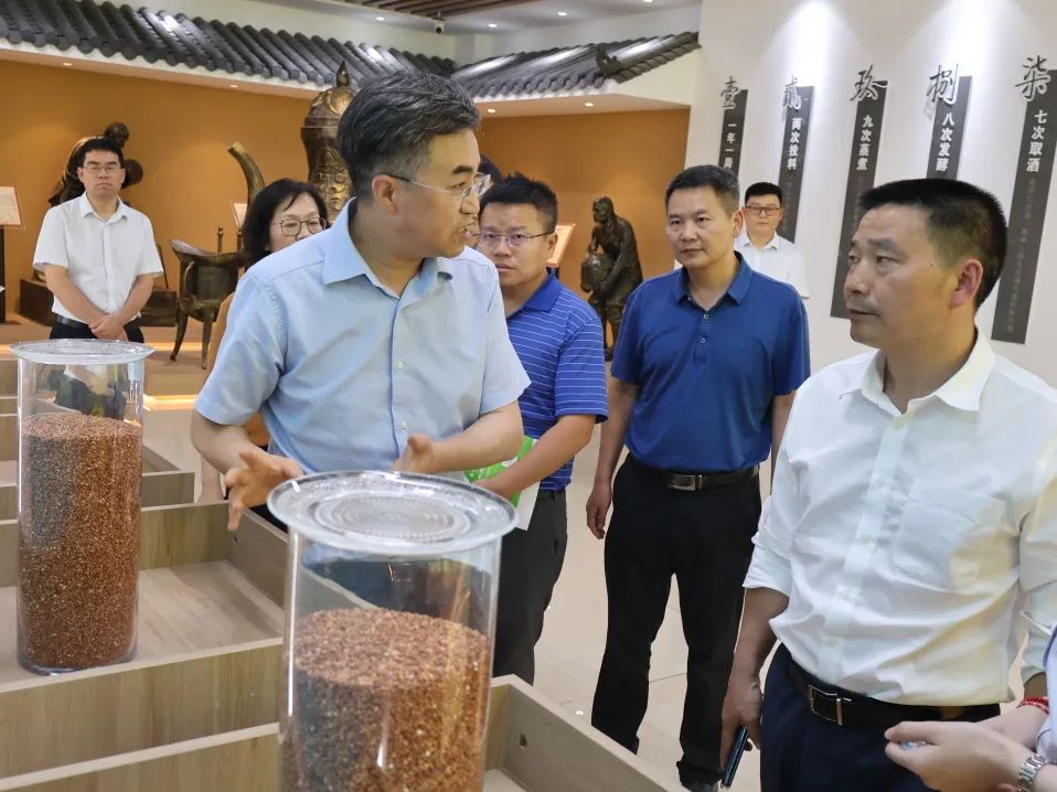 陶怀颖一行了解到酒粮集团“一优两辅”(一优:酒粮产、供、销、研、学产业;两辅:特色农特产品产销、酱酒销售)三大业务布局,凝心聚力“种一粒好粮,酿一滴好酒”,重点抓基地保粮源、抓资金保收购、抓订单保销售,采取“请进来,走出去”的工作方法,打造以科技贯穿的从“田间”到“餐桌”的全产业链现代化酒粮核心企业。