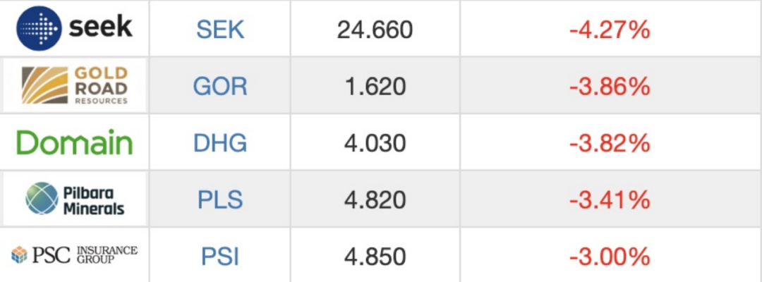 ASX200跌幅排在前5的公司: