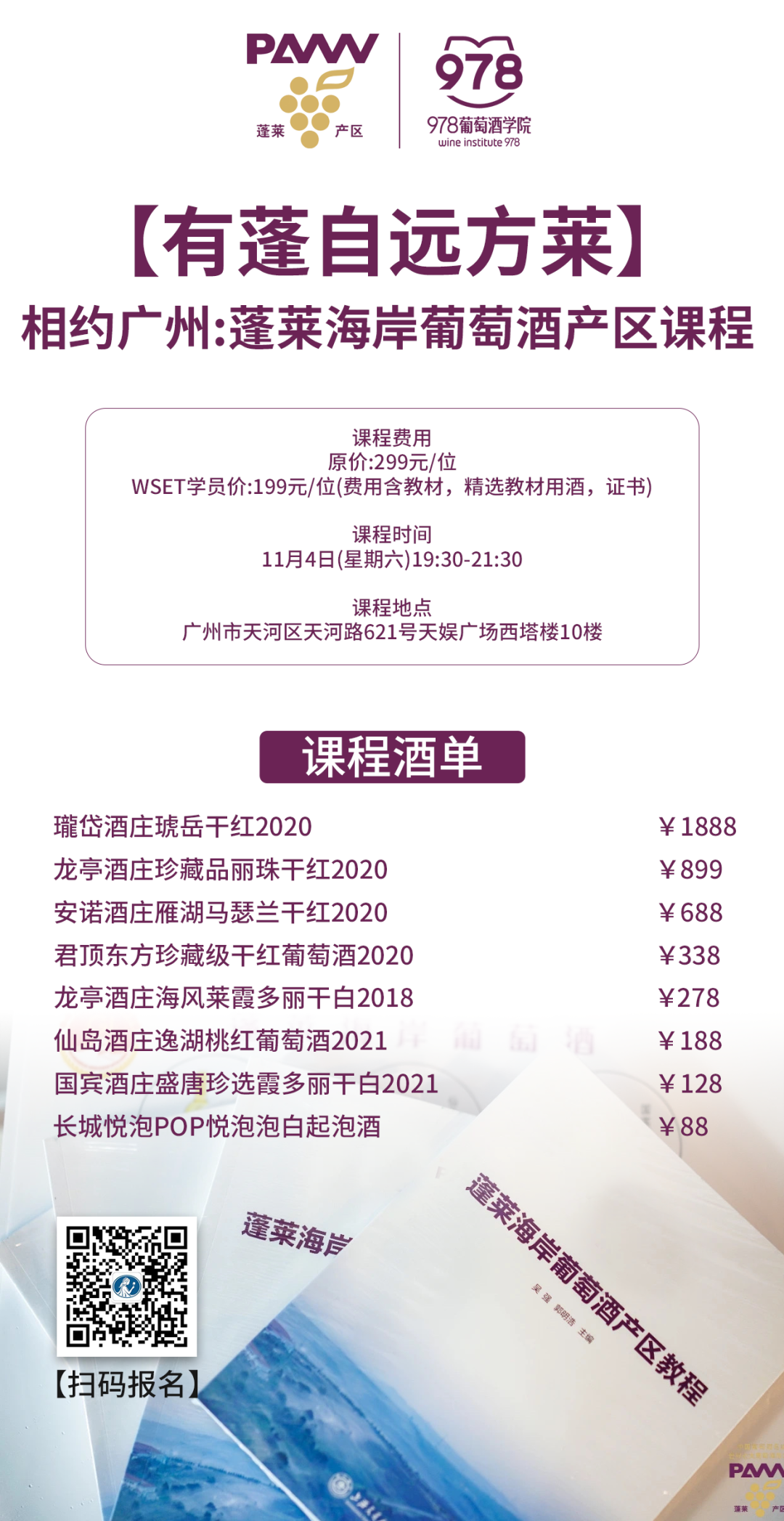 (课程酒单会根据实际情况微调,所有酒款均为蓬莱产区指定用酒)