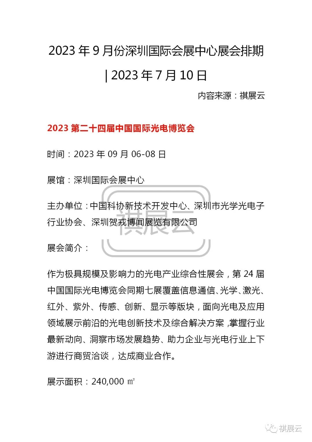 欢迎大家关注公众号“祺展云”,每日获取更多会展行业资讯。资料整理不易,如需转载,请联系工作人员转载注明出处。