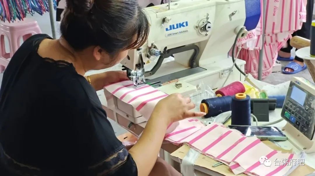 8月15日,走进椒江区章安街道,许多村民的家门口堆满了一摞摞布料及睡衣,在这里,几乎家家户户都有至少一台缝纫机。