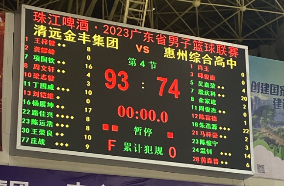 常规赛最后一轮有隐藏实力之嫌的清远队,此番主场面对D组第二名惠州综合高中队火力全开,领先优势越来越大,最后以93比74先拔头筹。