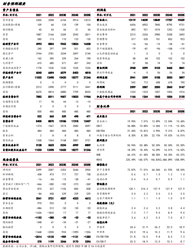 23H1公司毛利率、净利率分别为48.48%、20.49%,同比变动-0.19pct、+1.86pct,消费复苏背景下,公司净利率水平稳步提升。23H1公司销售费用率/管理费用率/财务费用率/研发费用率分别同比-0.03pct/-0.15pct/-0.11pct/-0.60个百分点至14.53%/3.17%/-0.35%/0.13%。成本端,2023年8月4日商务部宣布终止对澳大利亚进口大麦的反倾销税和反补贴税,预计或对公司2024年成本端改善显著,叠加包材价格压力趋于缓解,有望进一步释放未来盈利空间。
