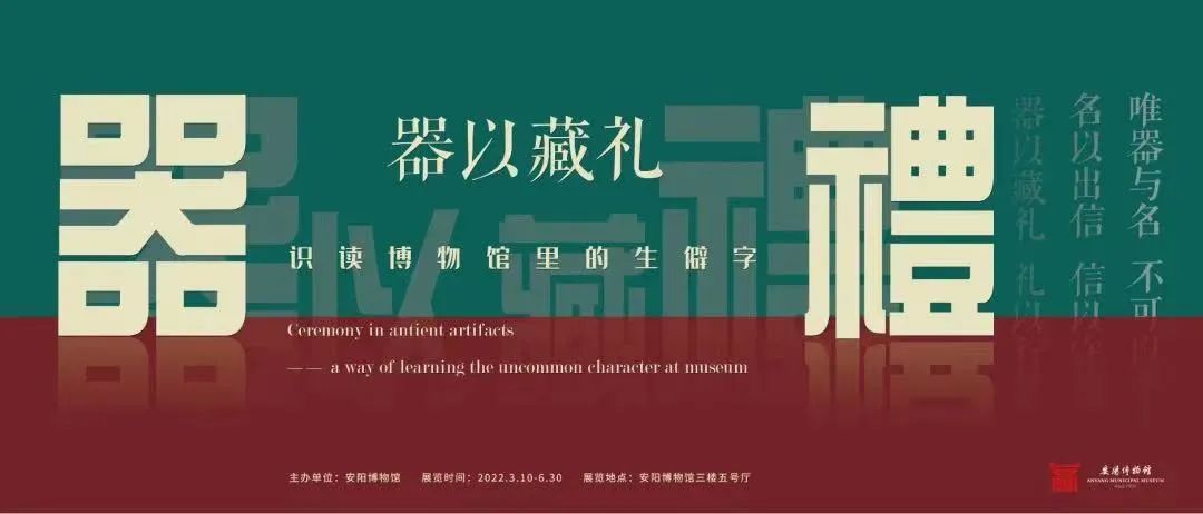 《器以藏礼——识读博物馆里的生僻字》展出了24个礼器等专用名生僻字,同时展出了120余件馆藏青铜器、玉器、甲骨等。希望通过器物与文字对应的形式,向公众诠释以器物名称为代表的汉字文化及其蕴含的礼制文化。