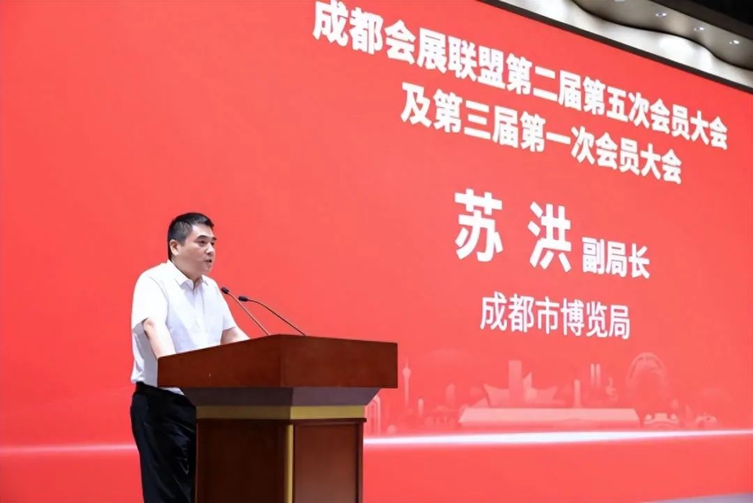 成都市博览局副局长苏洪代表市博览局,先对会展联盟新一届选举大会顺利召开表示祝贺,也对成都会展联盟至2012年成立以来的服务工作给予了高度肯定。他表示本次会议是会展行业的一件盛事,也是行业发展的一件大事。近年来,成都会展业发展迅猛,为经济社会发展做出了积极贡献。市博览局也将继续围绕建设“具有全球影响力的国际会展之都”目标,坚持扩大开放、提升能级、融合赋能、集成创新,推动会展业发展开启新篇章,构建会展经济高质量发展新优势。最后,希望联盟在李谦会长的带领下,再上新台阶、再创新辉煌!