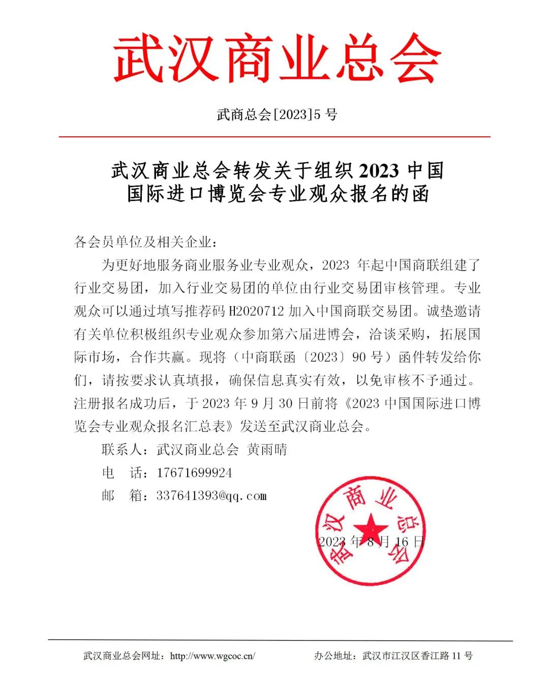 中国商业联合会(以下简称“中国商联”)作为进博会行业性招商合作伙伴,接受中国国际进口博览局委托,负责商业服务业的专业观众邀请、组织观展及服务工作。为更好地服务商业服务业专业观众,2022年起中国商联组建了行业交易团,加入行业交易团的单位由行业交易团审核管理。专业观众可以通过填写推荐码H2020712加入中国商联交易团。诚挚邀请有关单位积极报名参加第六届进博会,洽谈采购,拓展国际市场,合作共赢。现将有关事项通知如下: