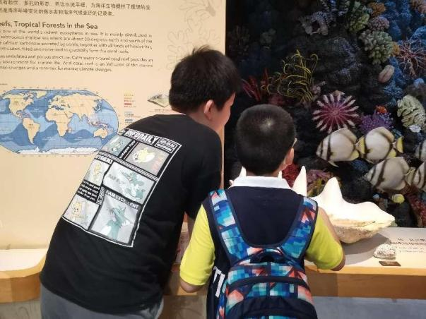 演化是生命世界永恒的主题?我们从何而来,如何演化成现代的模样?社工希望孩子们能够明白,想要了解自己的现在与未来,需要从过去中寻找。从太古代、元古代、古生代、中生代到如今的新生代,孩子们看着三叶虫到鱼类,从恐龙到哺乳动物的化石与标本,看着猿人到智人的骨架标本,探索生命的演化之道。