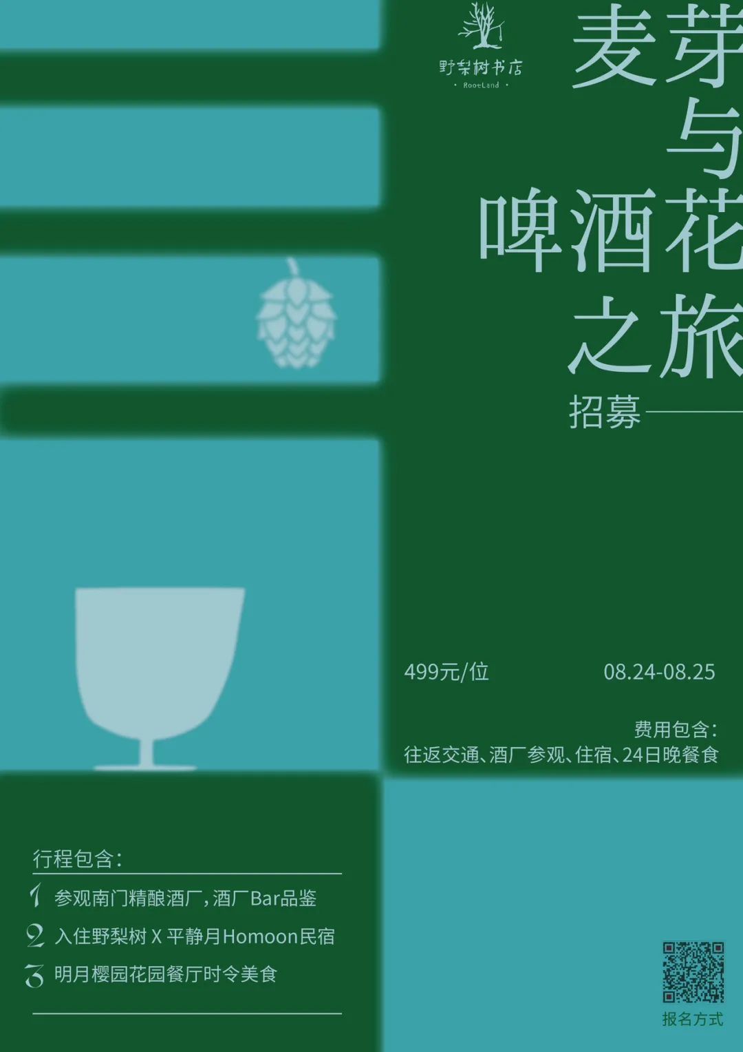 往返交通,保险,酒厂参观,讲解,野梨树民宿住宿,24日晚明月樱园餐食。