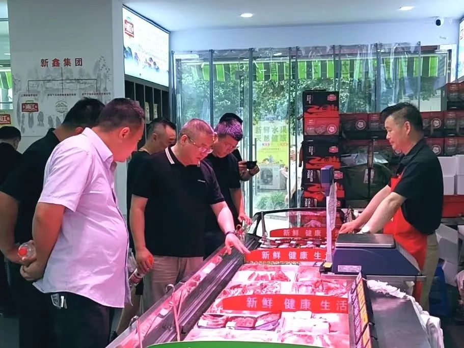 食品肉类公司一行人参观了上海新鑫集团的养殖牧场和销售门店,了解该畜牧发展公司和食品公司的运作发展模式及未来规划。为实现互利共赢,双方就生猪屠宰加工达成合作意向,表示后续将开展产品分割配送、食品深加工业务的全面合作,并探讨了“大不同”“王浦江边”双品牌门店合作。