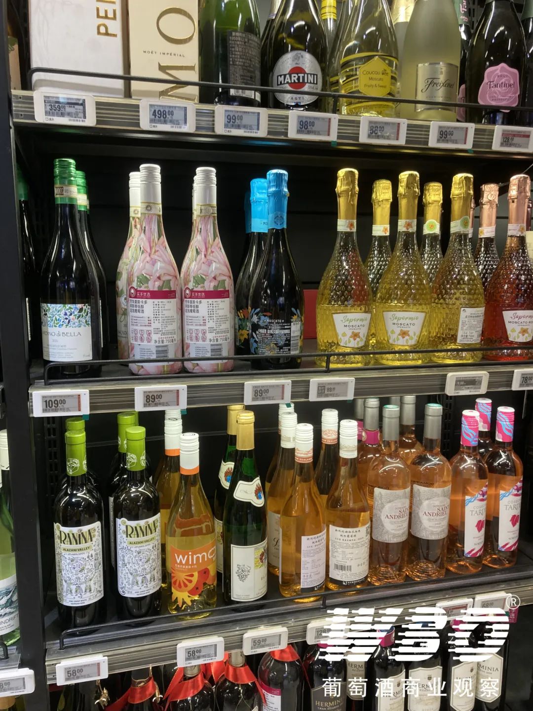 李涵和另一位业内人士均表示,现在正值夏天,因此白葡萄酒更受青睐,多陈列一点也正常。