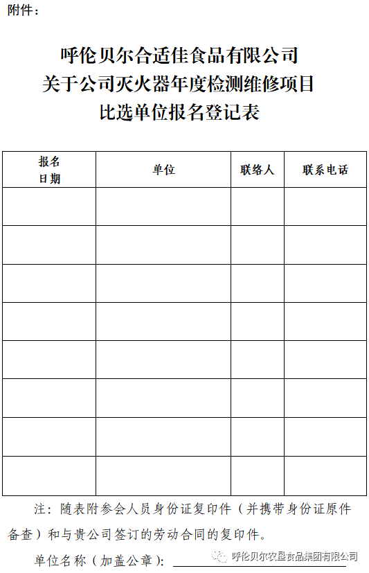 呼伦贝尔合适佳食品有限公司关于竞价厂区内灭火器年度检测维修的比选公告