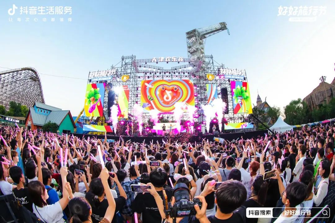 “线下事件营销”中,“好好旅行节”开启23天巴士巡游主题快闪,带领活动参与者畅游十一个水上乐园。除此之外,还联动天津欢乐谷共同举办了一场“好好旅行音乐会”,为游客带来全方位的假日旅行新鲜感,以此帮助文旅行业植入新力量。通过线上线下不间断营销,相关话题#解锁夏日旅行的100种玩法 吸引用户15000+视频投稿,共计创造1.5亿播放量,主题乐园快闪共拉动10000+用户打卡投稿,音乐节相关热点#颜人中好好旅行音乐节现场 #颜人中奶声奶气天津话 同时登上抖音种草榜及同城榜,一天曝光近千万。