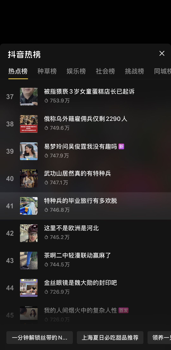此外,话题相关的视频播放量达到100亿次,超过2800万人参与了旅行产品的购买,发布带有#好好旅行节 话题的投稿数量高达110万条+。活动期间诞生出不少热门话题,比如#沉浸在江浙沪夏天的风景里 位列抖音平台全国榜TOP44,让更多人了解夏季避暑目的地热点,实现江浙沪夏季旅行的深度种草;#特种兵的毕业旅行有多欢脱 位列抖音平台全国榜TOP41,旅游领域结合毕业季时事热点与“特种兵”热梗结合,充分调动年轻人兴趣,为旅游产品的转化带来更多可能。