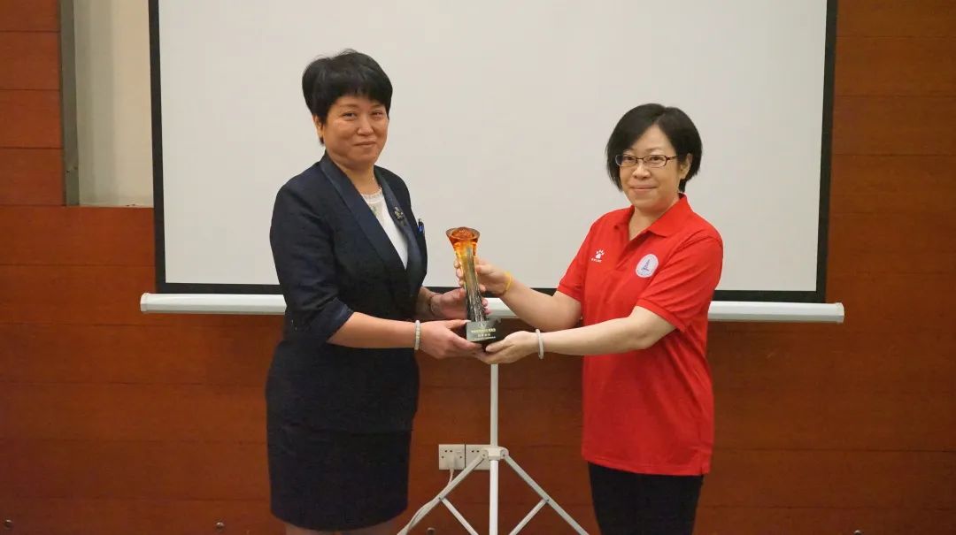 容桂餐饮行业协会常务副会长、7月轮值会长传递火炬给8月轮值会长、容桂餐饮行业协会副会长林惠欢