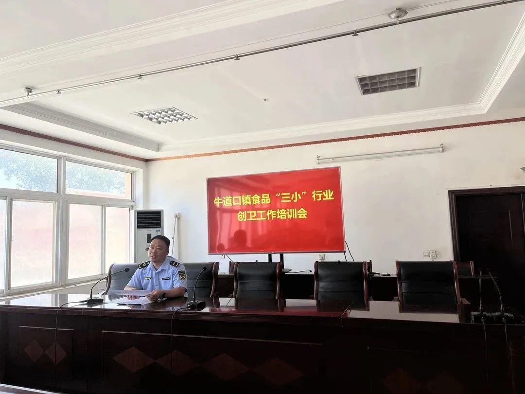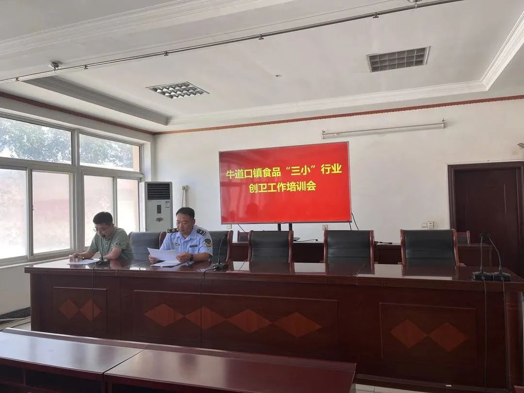 为推进牛道口镇创建国家卫生镇工作走深走实,切实提高食品“三小”经营单位卫生管理水平。牛道口镇于8月16日上午召开了食品“三小”行业创卫工作培训会。朝霞街市场监督管理所所长张永聪、牛道口镇分管领导出席会议并讲话,牛道口镇建成区30余名食品“三小”行业经营者参加培训。