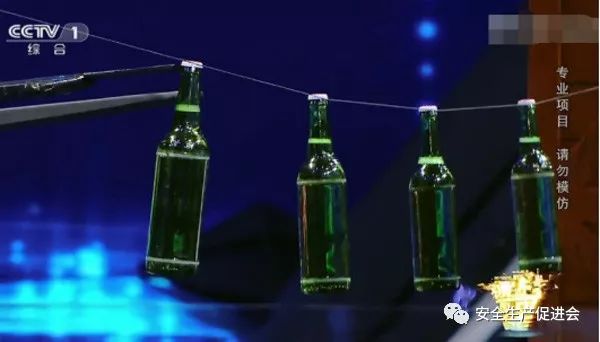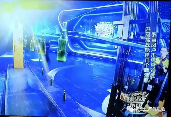 表演规则:挑战者将驾驶叉车,用叉车托起啤酒瓶,悬挂于钢丝上,挑战者若能将6个酒瓶成功挂起5瓶,即为挑战成功。挑战者有两次挑战机会!
