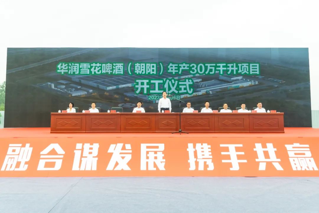 华润雪花啤酒年产30万千升项目位于朝阳经济技术开发区,由华润雪花啤酒(中国)有限公司投资建设,预计总投资10.2亿元,规划产能30万千升/年,占地面积280亩,建筑面积18.6万平方米。达产后,预计年可实现产值10亿元,利税1.5亿元,将成为辐射辽冀蒙的区域性支撑型企业,有效推动多产融合发展。单义在致辞中表示,华润雪花啤酒年产30万千升项目开工,是朝阳落实辽宁全面振兴新突破三年行动推进会的实际举措,是央地合作精准化对接、项目化落实的具体行动,是招商引资项目建设取得的标志性成果。当前,朝阳坚持以习近平新时代中国特色社会主义思想为指导,牢牢把握高质量发展这个首要任务,聚焦实施全面振兴新突破三年行动,全力抓招商抓项目抓企业,全力深化央地合作,全力打造营商环境“升级版”,经济运行实现质的有效提升和量的合理增长。全市上下要以华润雪花啤酒年产30万千升项目开工为起点,树牢大抓项目的鲜明导向、浓厚大抓项目的工作氛围,咬定目标、埋头苦干,乘势而上、拼抢争实,奋战三季度、决战四季度,用心用情用力做好服务保障,努力形成开工项目铺天盖地、施工项目热火朝天、竣工项目接二连三、储备项目源源不断的生动局面,奋力夺取三年行动首战之年全面胜利,在辽宁全面振兴新突破中展现朝阳担当、彰显朝阳作为。侯孝海在致辞中对朝阳市委、市政府长期以来对华润雪花啤酒有限公司的支持与关爱表示感谢。他表示,雪花啤酒朝阳项目的建设,是企业全面融入辽宁振兴发展的生动实践,是企业推进全国性战略的重要一环。将充分发挥央企的资金、技术、产业优势,加大投资力度,加快项目建设,把项目打造成东北地区的行业标杆项目,以实际行动助力朝阳经济社会高质量发展,在打好打赢新时代的“辽沈战役”中贡献企业力量。