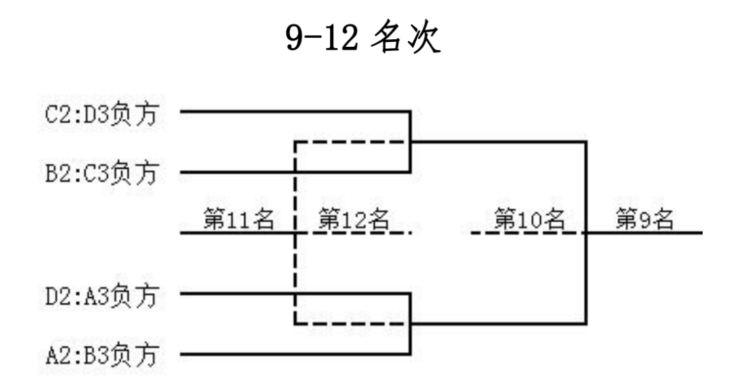 ★八强附加赛败者将进入9-12 名次排位赛,同样采用“主客场回合制”,按下列对阵方法进行比赛,决出 9 至 12 名次。