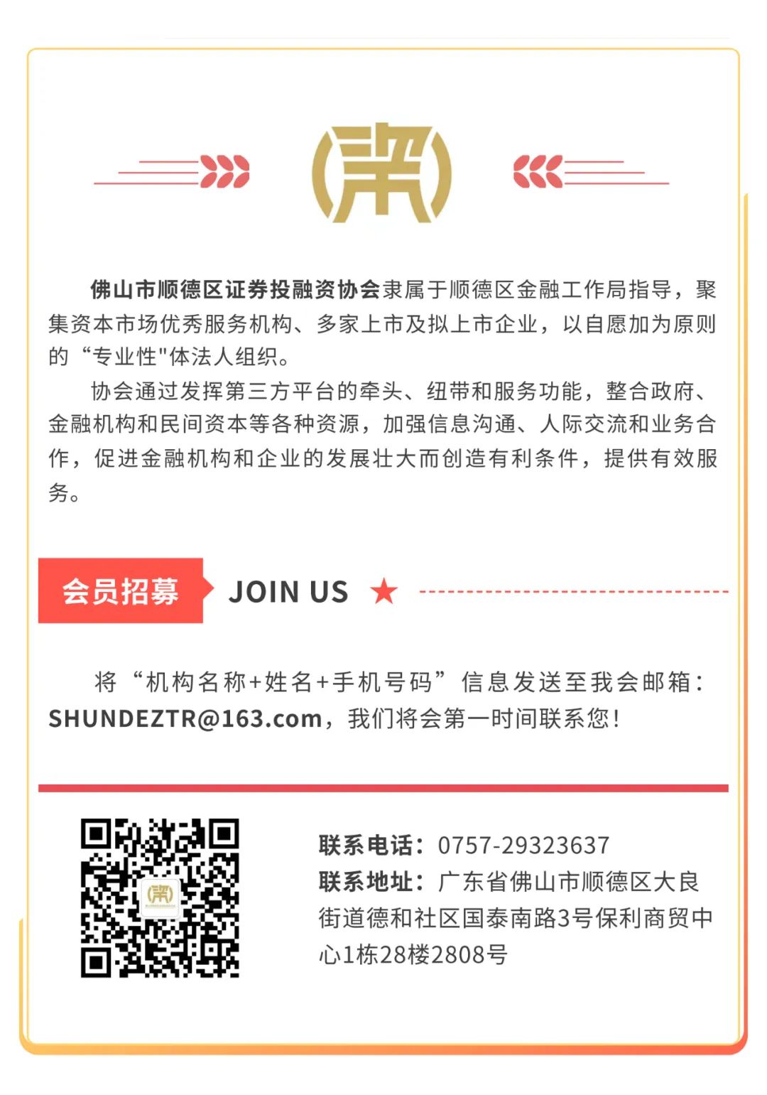 为加强协会间交流合作、共同发展!2023年8月16日,佛山市顺德区证券投融资协会秘书处拜访佛山市顺德区新能源产业协会,双方就进一步深化合作进行座谈交流。