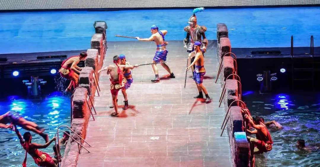 后观赏【世界首家360°顶级环绕室内实景舞台秀——闽南传奇】闽南传奇秀打破了五千年来单一的舞台观演模式,通过移动看台把观众送到每幕视角的最佳观赏位置,欣赏真山真水演出。会跑的观众席被包装为一艘巨轮,四周以水面做掩体,各种大件舞美埋在水中内藏玄机,恐龙王国、极限跳水、火山爆发、岛城大战、海上斗匪、水面飞兽、飞龙出水,幕幕精彩不断,给大家带来悬念,震撼,刺激、欢快的超级文化娱乐体验。