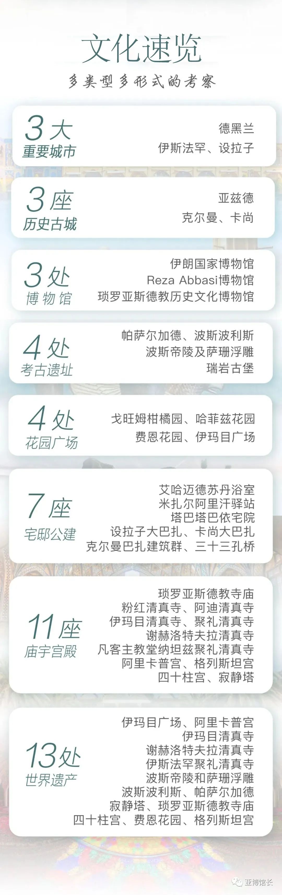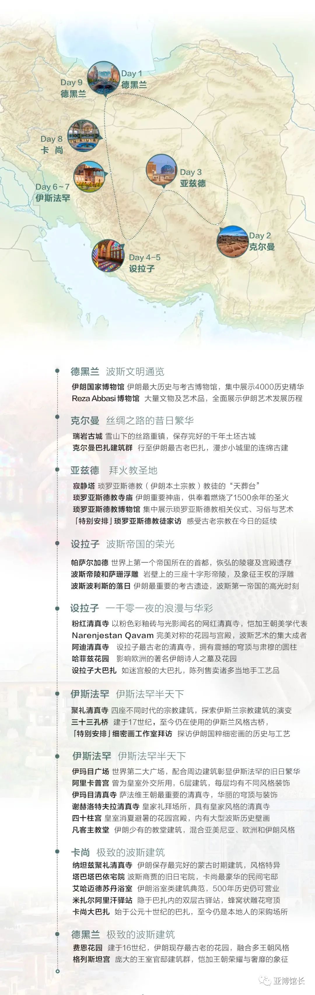 这里曾建立了「世界上第一个横跨亚欧非三大洲的帝国——波斯」,在古代东西方文明史上占有极其重要的地位,并且对许多民族文明产生了深远的影响。 对于人文旅行爱好者来说,散落在伊朗各地的众多世界级文化遗产一定能让你大饱眼福。历史上的著名人物如赛勒斯、大流士、亚历山大大帝、成吉思汗等,都在这里留下印记。几千年来,埃兰文明、波斯文明、希腊文明、突厥文明、蒙古文明、阿拉伯文明在这里交汇、碰撞,一个接一个的王朝在这里建立又灭亡,人类主要文明的精华与碰撞的结果都可以在这里找到痕迹。 作为欧亚大陆的交通枢纽,也是人类文明的十字路口,世界上少有一个地方像伊朗一样,经历了如此众多的领土、政治、宗教和文化的动荡与兴替。神秘的东方古国、中东动荡的心脏、世界目光的聚焦之所…了解伊朗的前世今生,对于梳理清楚世界历史以及现在的世界格局都是不可或缺的。 同为文明古国、分列丝绸两端,历经古代王朝更迭、近代西方入侵与当代民主起义,在伊朗四千年中,看见另一个中国。