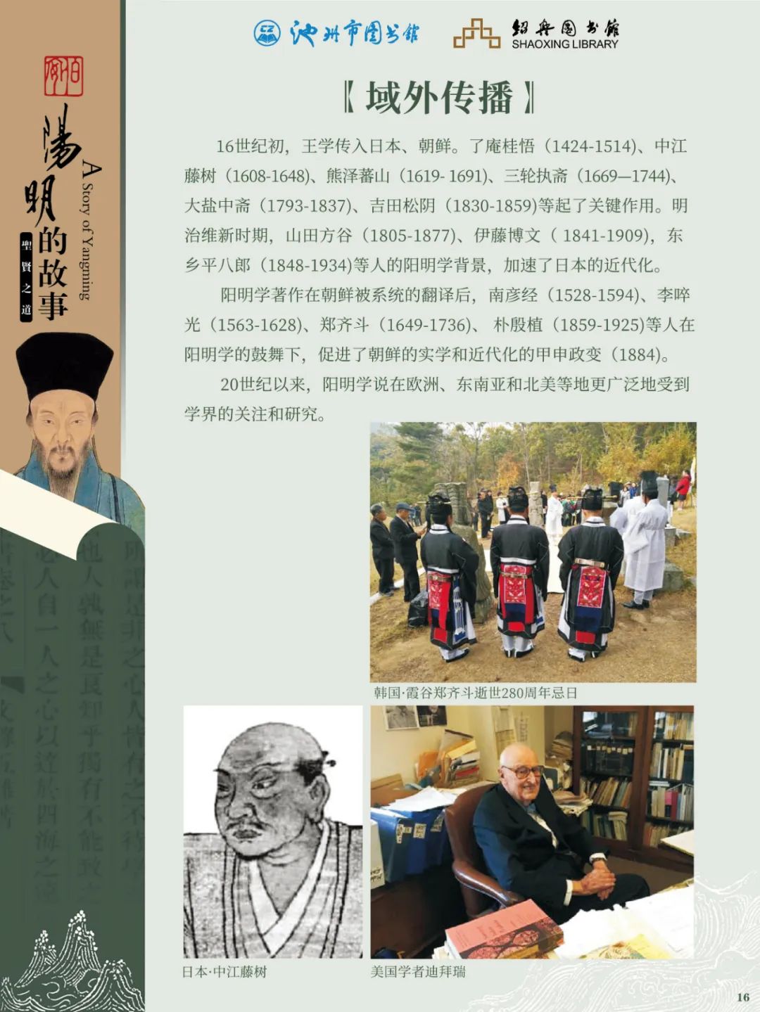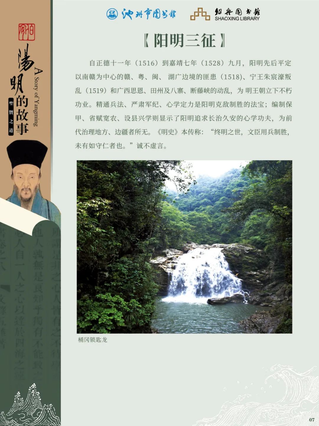 王阳明(1472—1529),名守仁,字伯安,浙江余姚人,因曾筑室于绍兴市郊会稽山阳明洞天,自号阳明子,世称阳明先生。他是明代著名的哲学家、军事家、教育家,也是中国古代能冠以“三不朽”(立德、立功、立言)之圣人的极少数人之一。