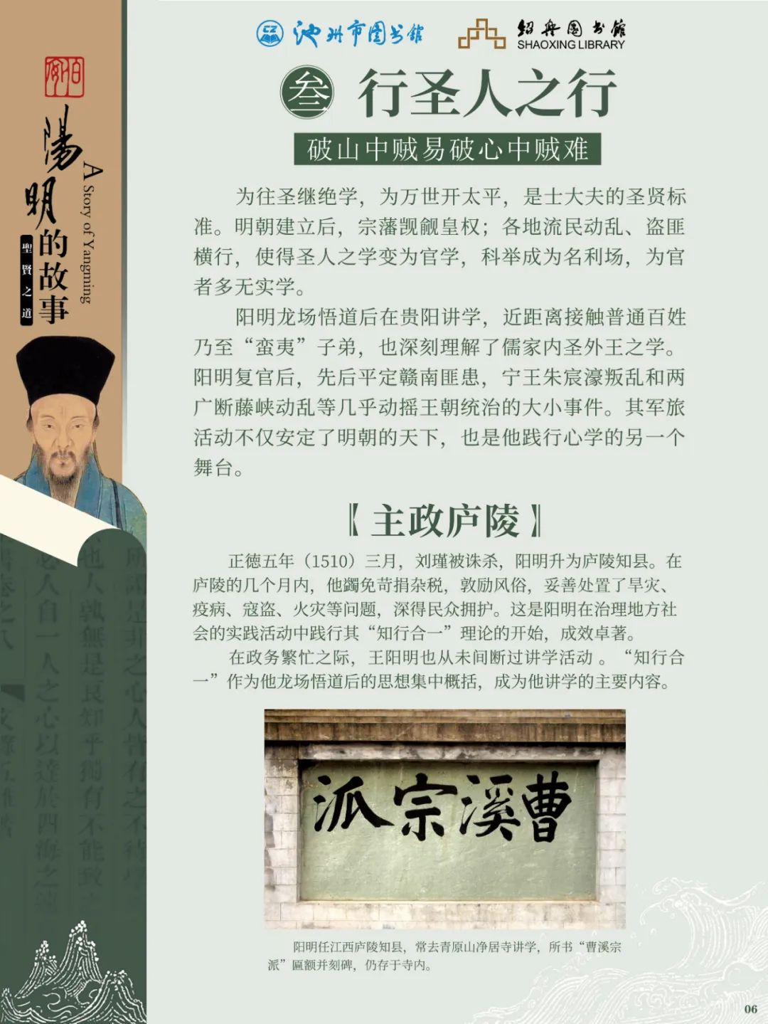 本次“阳明的故事”展览,从“立圣人之志”、“悟圣人之道”、“行圣人之行”、“传圣人之学”、“述圣人之事”五个方面,集中展示阳明先生不负初心的一生及其“知行合一”的心学理念。