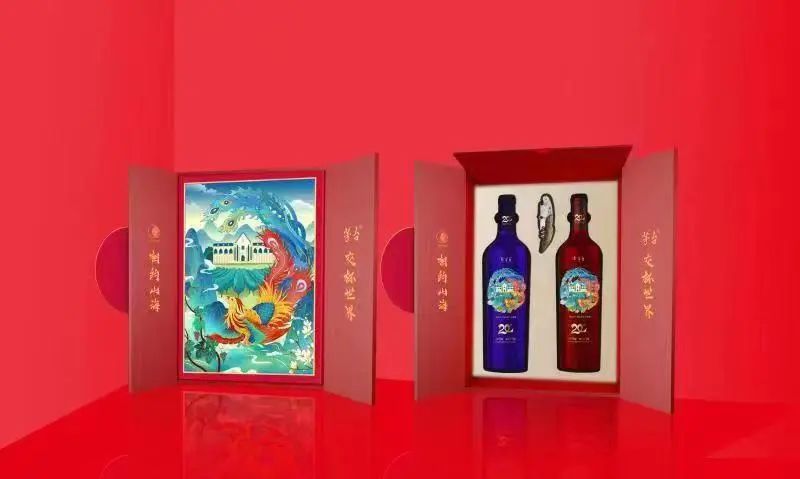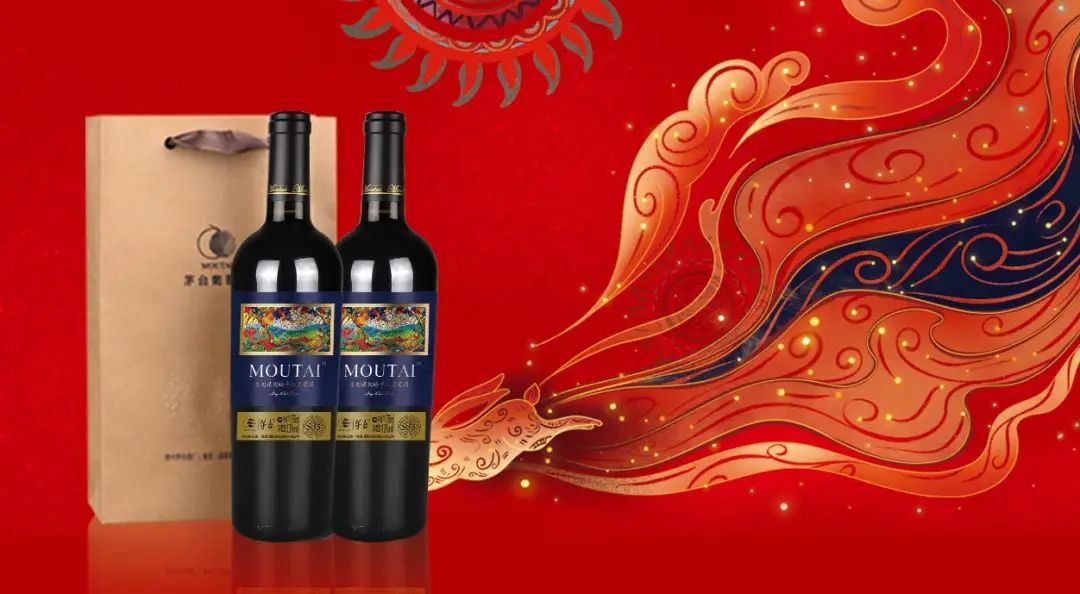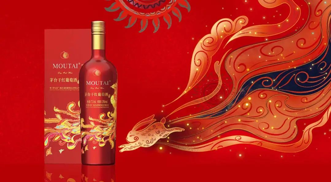 茅台葡萄酒宴席用酒产品以致敬人生重大时刻为主要设计理念,该产品瓶身和酒盒采用中国红作为设计底色,寓意和谐幸福的金色凤凰祥瑞盘旋其上。