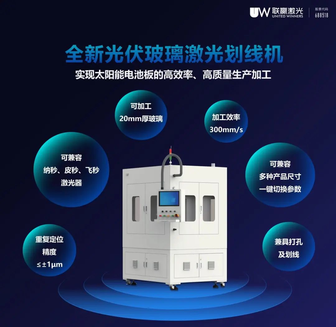 联赢激光全新上市的光伏玻璃激光划线机,同时兼具打孔、划线工序,进一步简化工艺流程,实现快速、精确和一致的激光打孔及划线,避免产生微裂纹和剥落碎屑的问题,提高产量,降低次品率;另外,无需额外的工艺步骤和化学物质,具有高精度、高效率和非接触式的特点,实现太阳能电池板高效率、高质量、低成本生产加工。