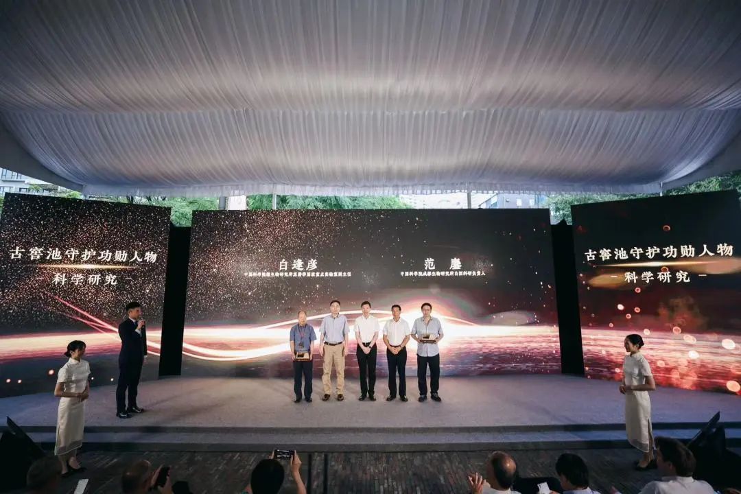 活动当天,水井坊特别定制了古窖池纪念礼,现场致敬三类功勋人物,分别是在古窖池发掘保护方面突出贡献的樊一、刘家琨、蒋成、陈剑等在内的展陈设计师、建筑师、文保工作者;