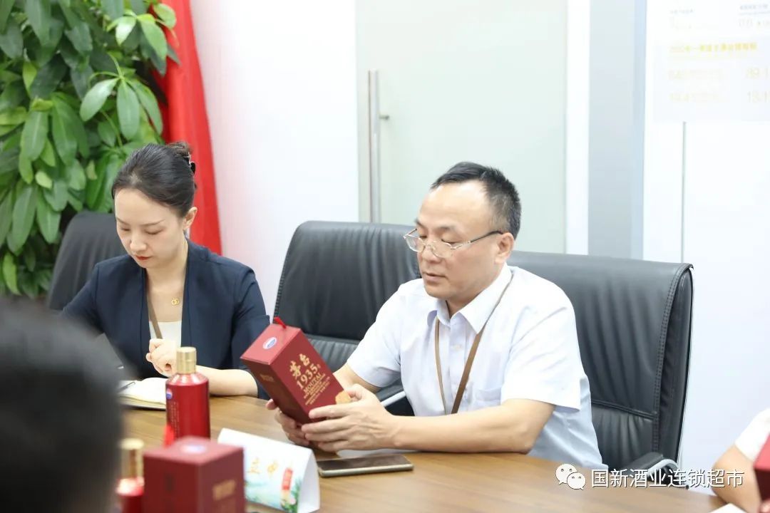 座谈交流会上,国新酒业品牌部副总麦联荣向参会人员介绍酱香酒发展历程、茅台企业文化、生产工艺、经营业态、收藏价值、战略定位等,并就发展规划、合作模式等方面进行深入探讨。