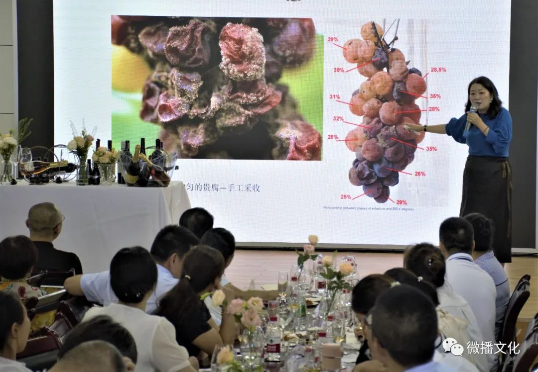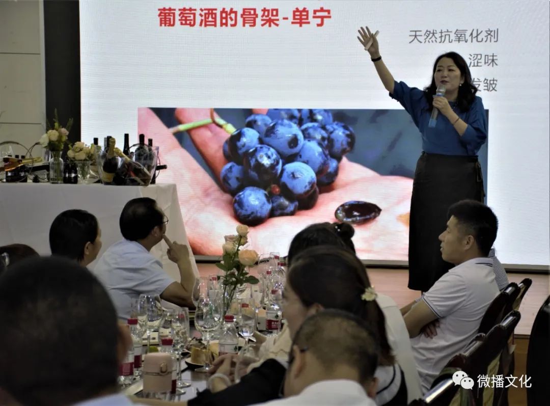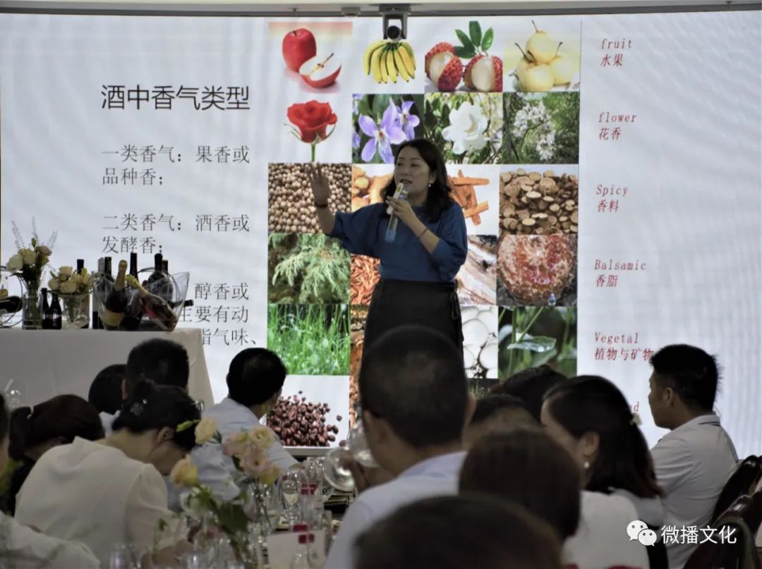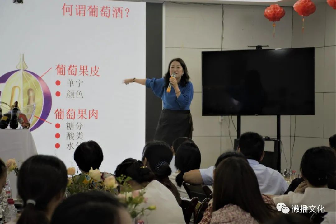 当地知名高校的化学老师范晓蓉女士站在讲台上,用她那优雅的姿态,激情洋溢的语调,博学广义的专业知识,传递着葡萄酒文化应有的柔美。