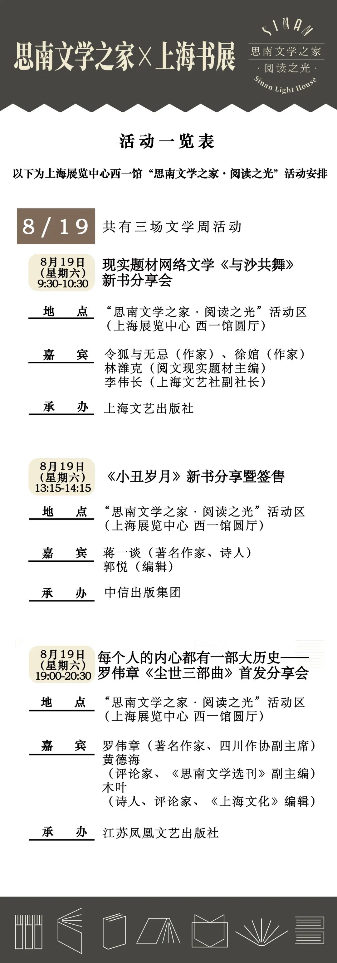 【明日预告】上海展览中心西一馆“思南文学之家·阅读之光”8月19日活动预告