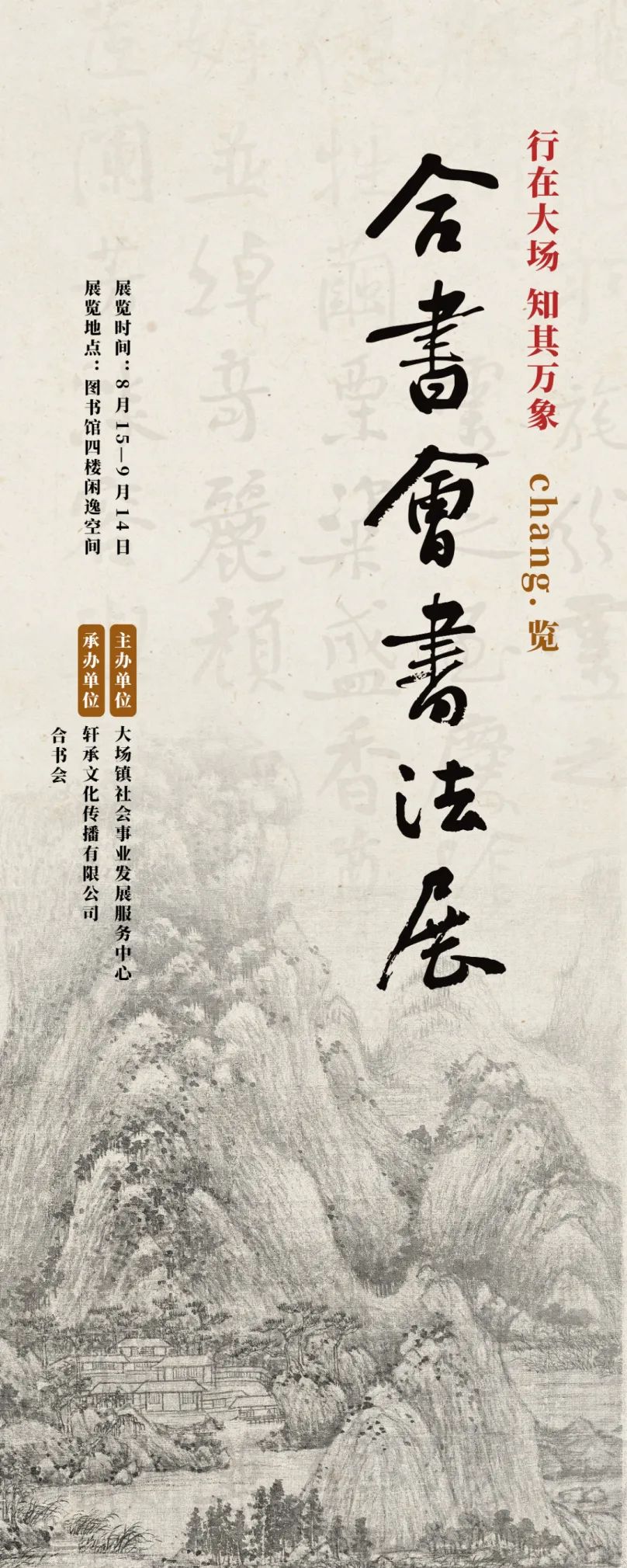今年以来,大场镇推出“行在大场 知其万象”文旅地图,积极打造15分钟文体旅社区生活圈,推动文旅融合高质量发展!8月15日-9月14日,快来大场镇图书馆四楼“闲逸空间”“Chang•览”书法盛宴!作品出自上海民间书法社团“合书会”。志趣相投的他们自发成立书法社团,因书法之爱而“合”,又不盲求于“和”,大家各有书风追求,艺术见解亦不同,故曰“合而不同”。社团力图打造一个以艺术实践学习为线索,成为对成员个体成长有真正帮助、关怀和共进的团体。书法展自征稿信息之日起,社团成员精心打磨作品。最终精选出近30位成员的四十多件书法作品汇聚“闲逸空间”,为市民呈现了一场书法艺术的盛宴。先来一饱眼福吧↓