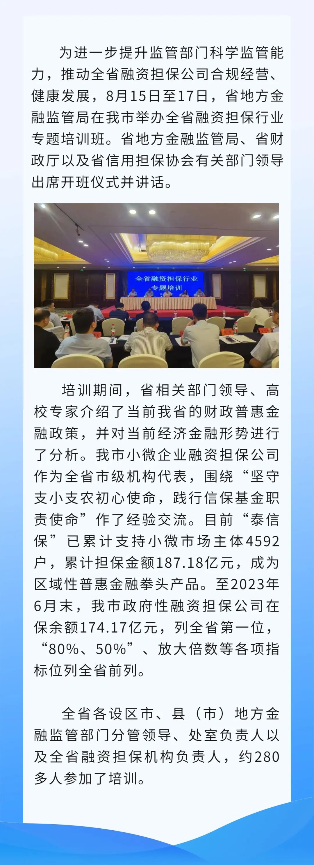 全省融资担保行业专题培训班在我市圆满举办
