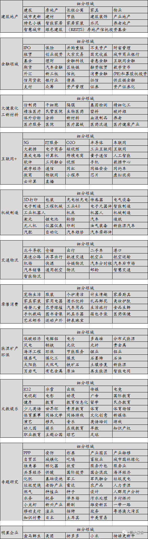 附报告覆盖行业范畴