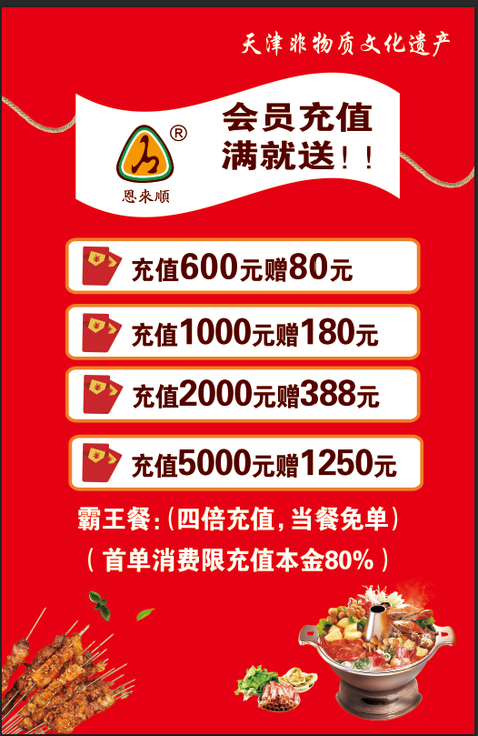 四倍充值 当餐免单